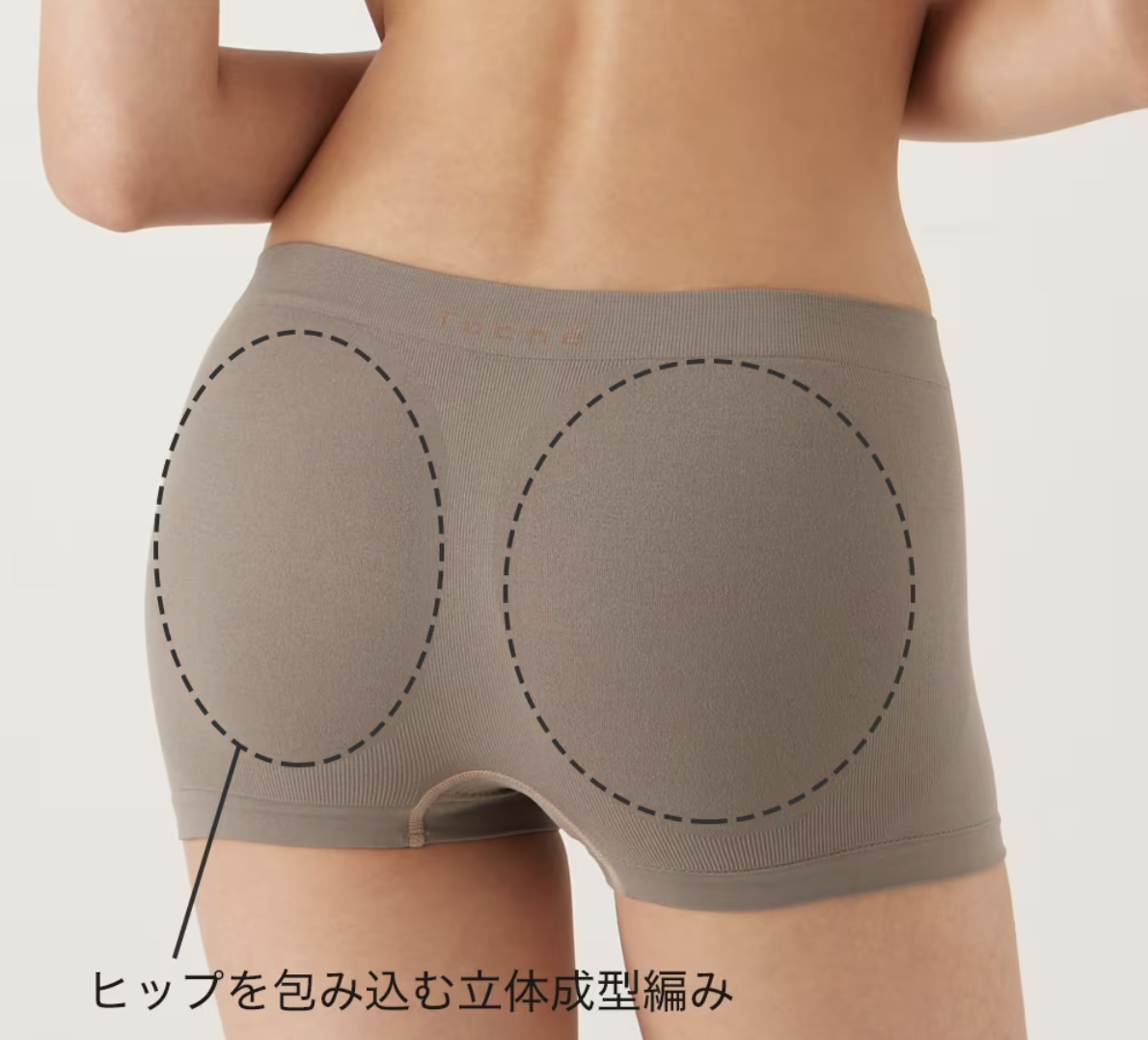 一見シンプルですが、ヒップラインは成型編によって立体的な丸みがあり、ほどよくお尻をホールドしてくれます。また、肌への負担を軽減するために洗濯タグをプリントにしたり、縫い目を減らしたりといった細かい工夫もされています。